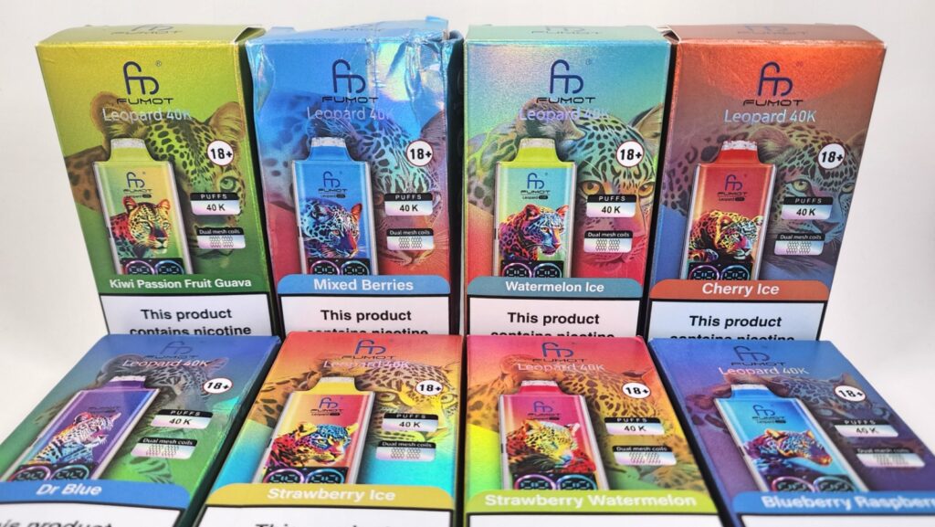 The Leopard 40K was sent to me for review from Fumot (check it out here). This disposable vape features dual mesh coils and is designed to last up to 40,000 puffs. They have 20mls of e-liquid, bright & colorful bodies, 700mAh batteries, and they come in nicotine strengths of 0, 2, 3, and 5%.