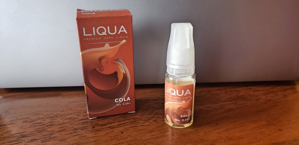 It’s a 50% PG + 50% VG e-juice and is described as a rich and sweet cola flavor complimented by a hint of lemon and lime.