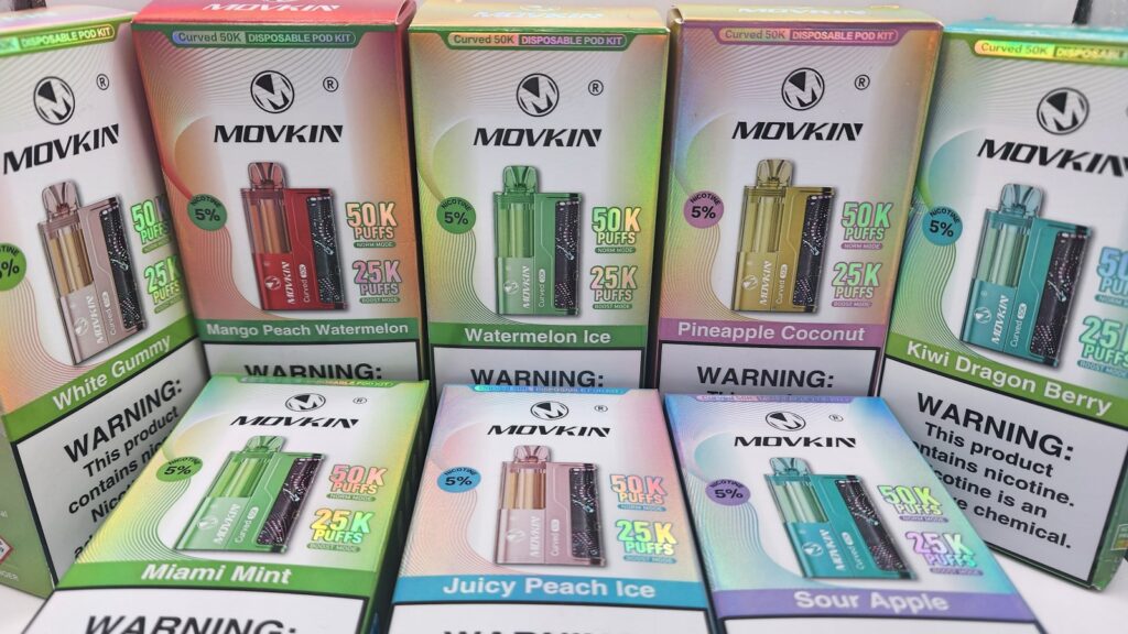 The Movkin Curved 50k was sent to me for the purpose of review. This is a two-piece device, with one section a pod and the other a battery. It has a unique curved screen, a clear liquid window, and an estimated 50,000 puffs.