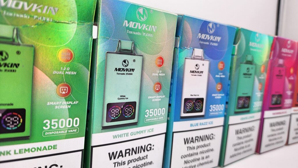 Movkin sent me their Tornado 35000 devices for review. These disposable vapes use dual mesh coils, have a colorful screen, a 700mAh battery, and charge with USB-C. They also have an estimated 35000 puffs, which is a TON of hits!