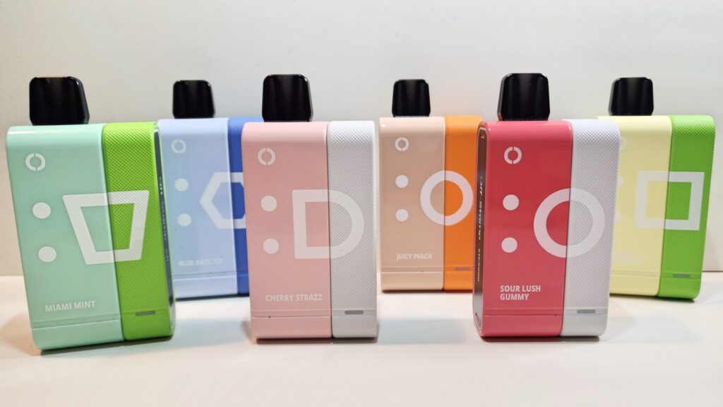 The device is very modern and stylish. The colors are all light and calming. There are different colors for the disposable section and different colors for the charging piece. And they’ve clearly put a lot of thought into how these colors work together because none of the colors of the pods are the same as the charging device, but no matter which colors you put together, they all look good.