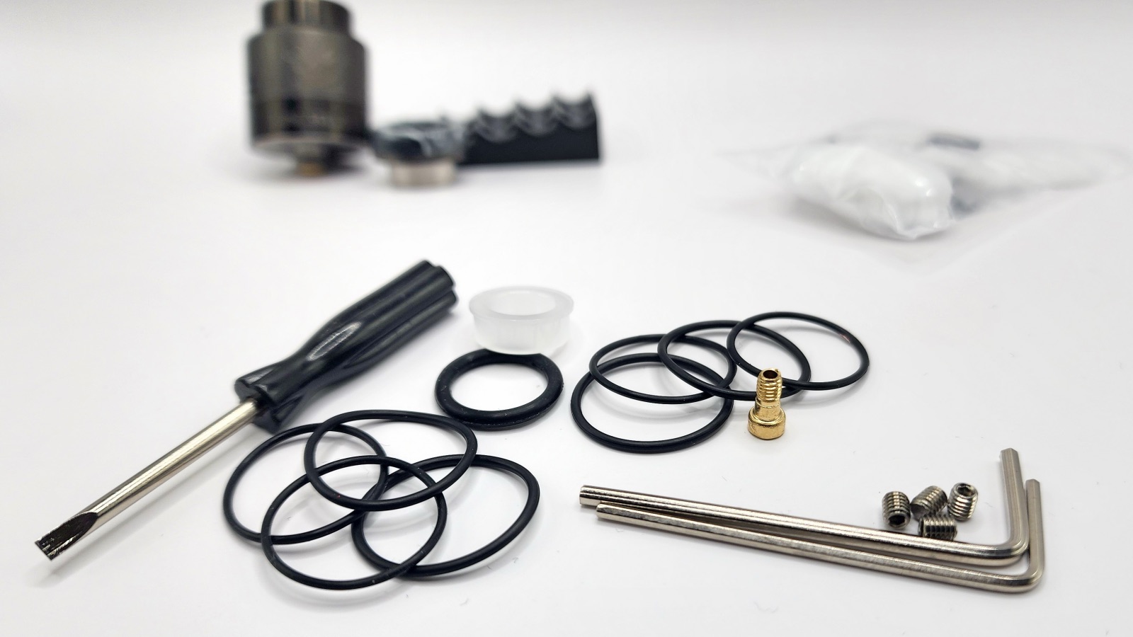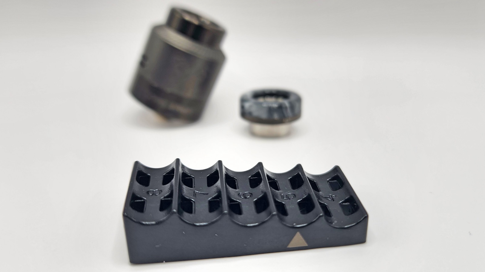 I also love that Hellvape gives you everything you need to get the RDA going, including two pieces of cotton, two coils, and even a bottom-feed pin if you want to use this on a squonk device.