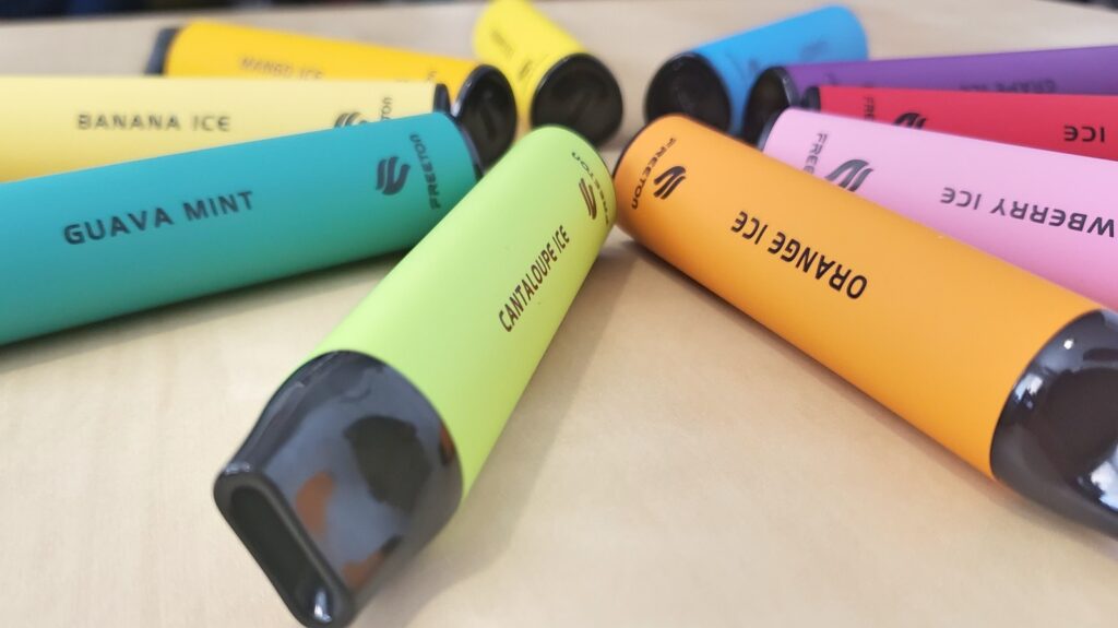 The updated version removes the USB-C port, so it’s no longer rechargeable, and it now has 7ml of liquid instead of 6ml and it has a 1100mAh battery instead of 650mAh. So now they have more liquid and battery large enough to vape all of the liquid without losing flavor.