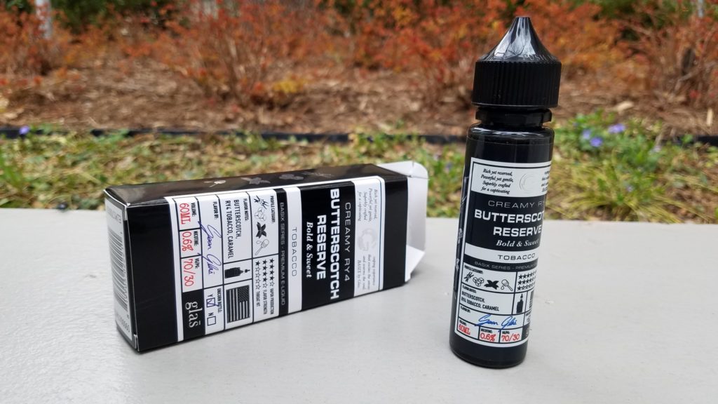 The Basix Series Butterscotch Reserve e-liquid was sent to me for review directly from Glas Vapor.