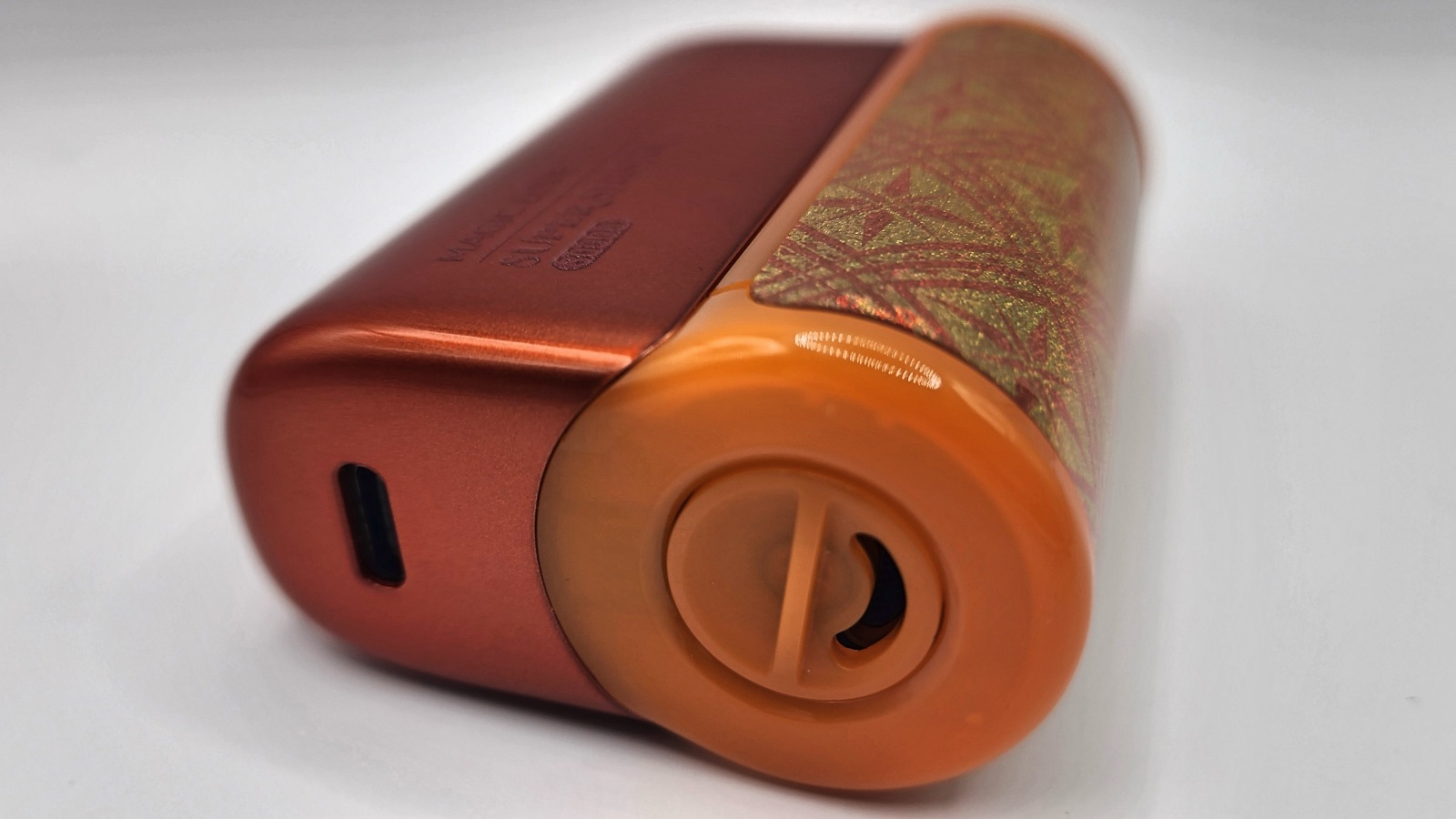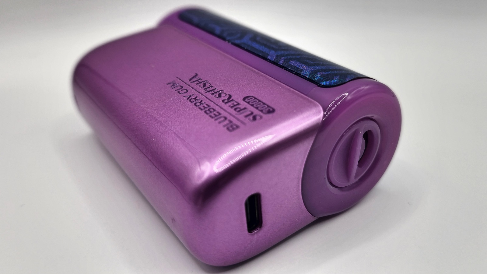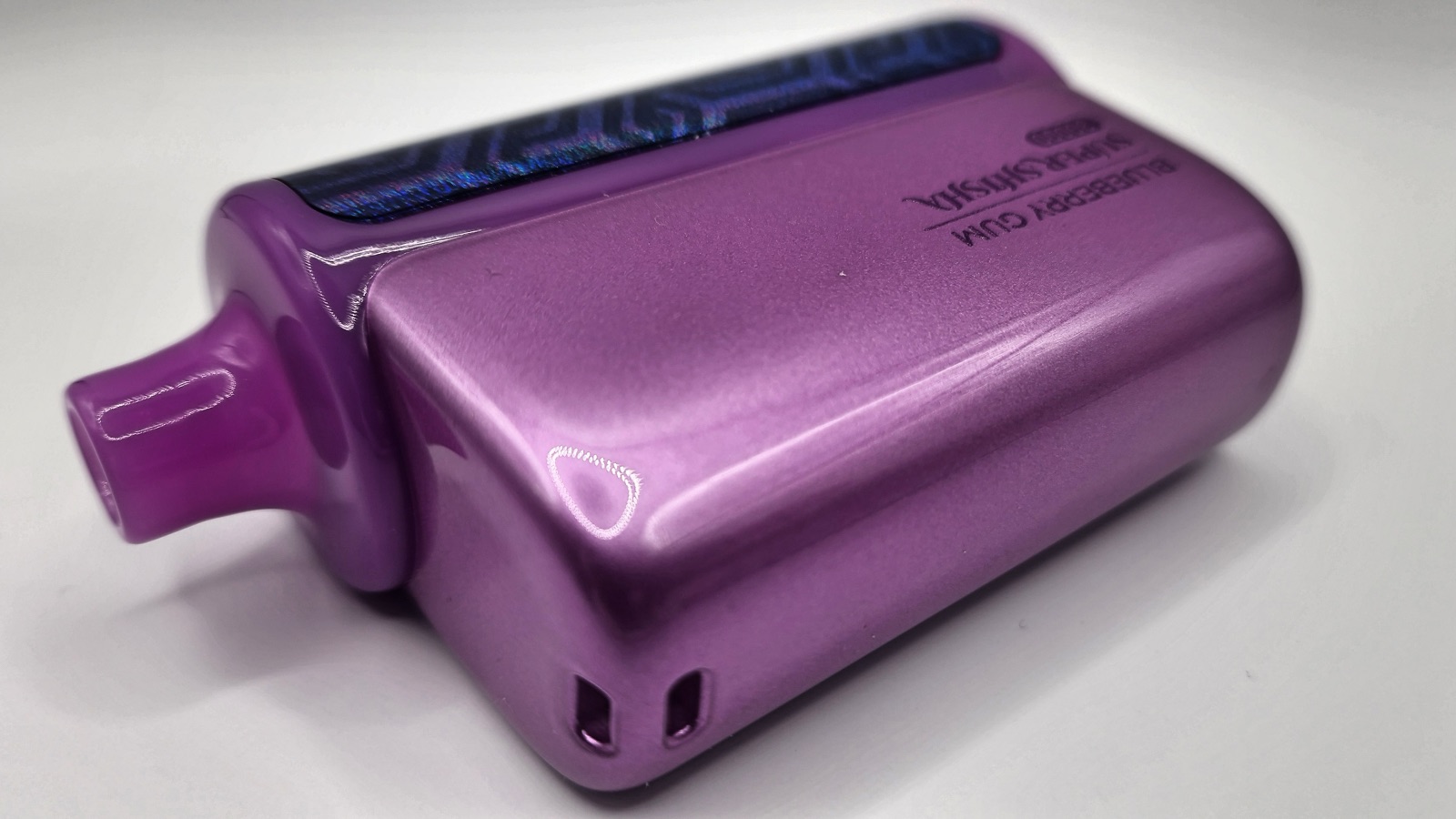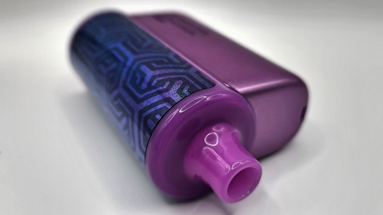 The design is a little strange. It looks like a tube-style vape with a battery slapped onto it. I’m not a big fan of the design, but I also don’t think it’s a big deal for a disposable vape. I like that the body has a soft, smooth plastic feel. It’s very light too.