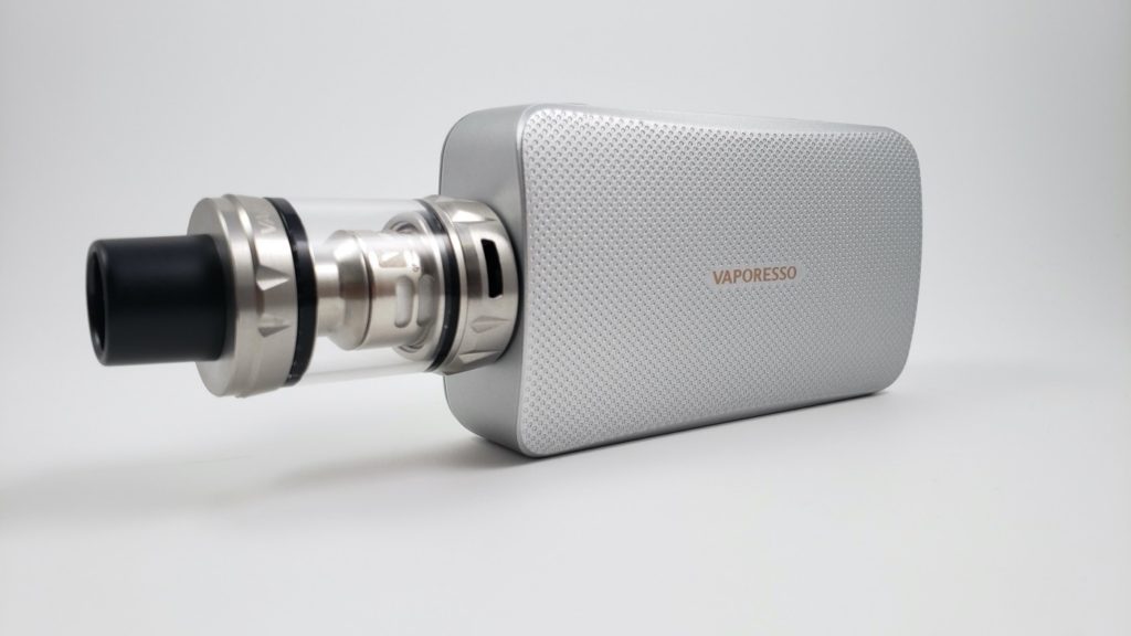 One of the features that Vaporesso promotes is that this is a 220-watt device that weighs only 107g without batteries inside. That’s probably hard to put into perspective unless you weigh things for a living. It’s 3.7 oz, so it’s about as heavy as a 1/4 lb hamburger patty. Does that help? Ok, I’ll just say that it’s pretty light.