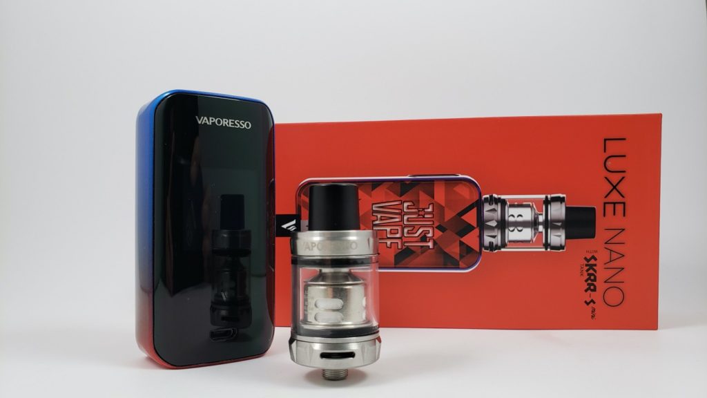 The Luxe Nano kit was sent to me for review from Vaporesso. This is a smaller version of the Luxe S kit and is very similar in a lot of ways. The main differences are that it’s smaller, has an internal battery, and it pushes a max of 80 watts.